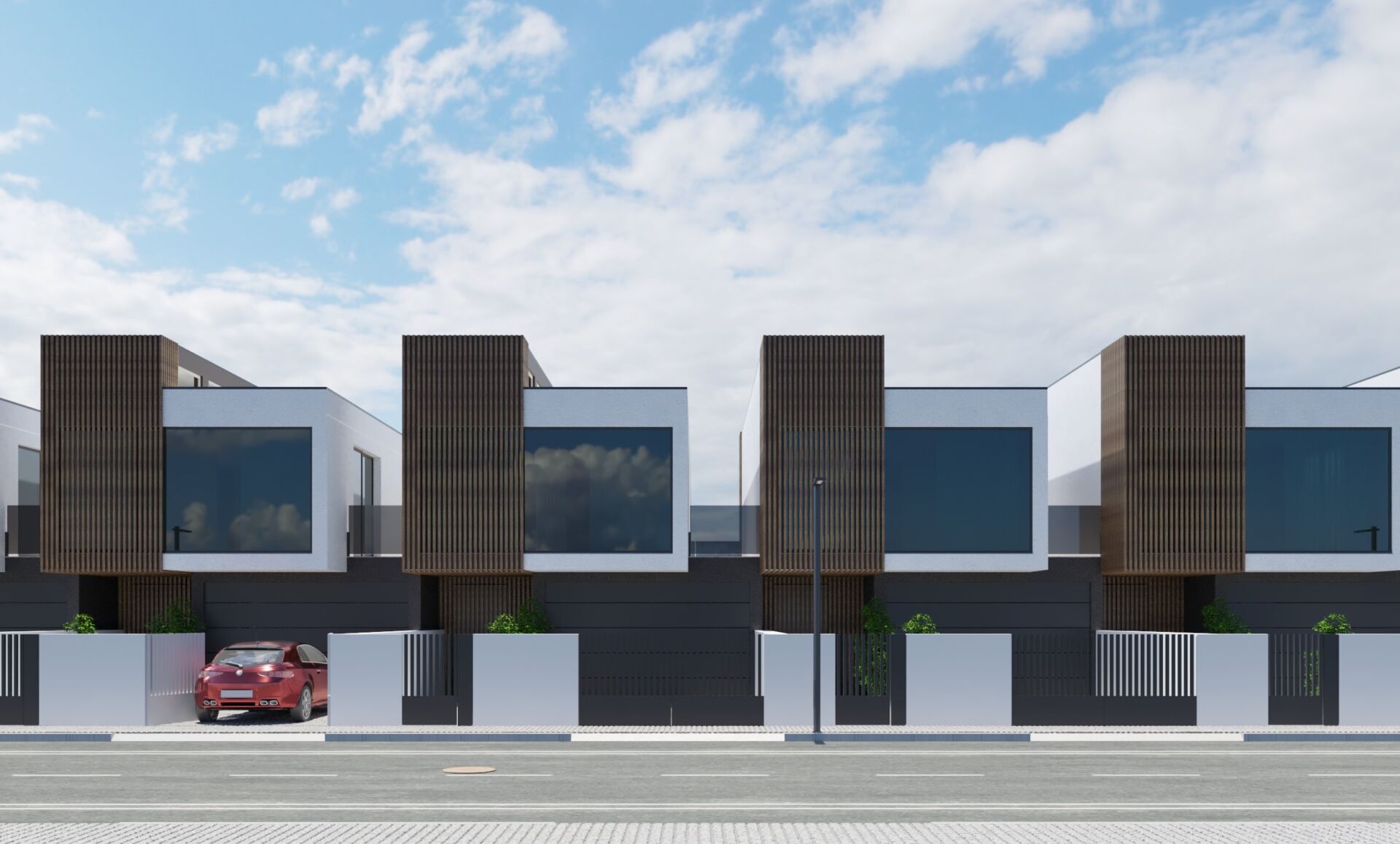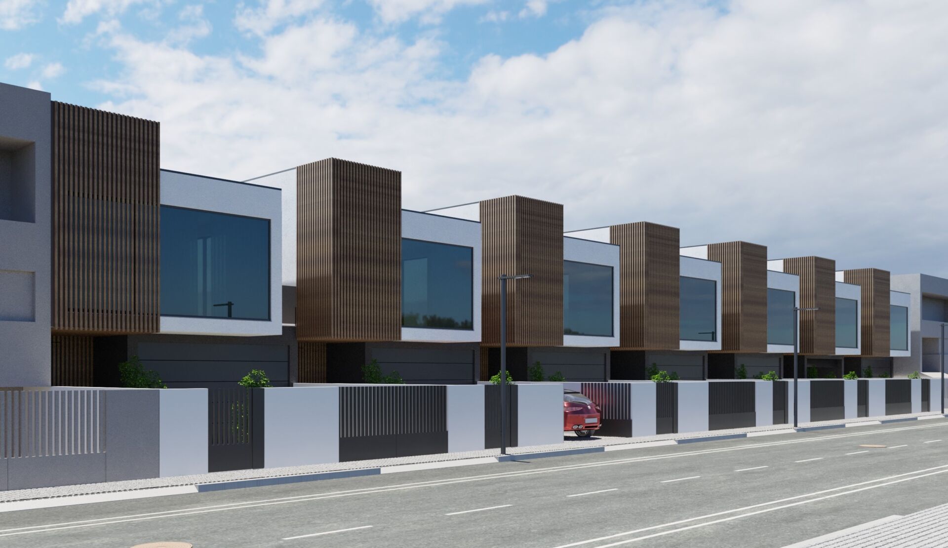 - Portões de acesso e de peões em tubo forjado preto;